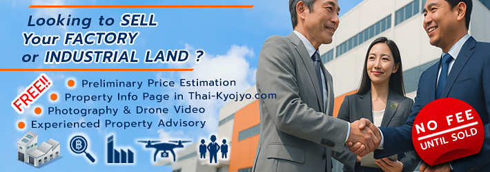 Anyway, if you are properties owner and would like to sell or rent out your properties. THAI-KOUJYO.COM have free space for your announcement. Just feel free to contact us (See term and condition here).
