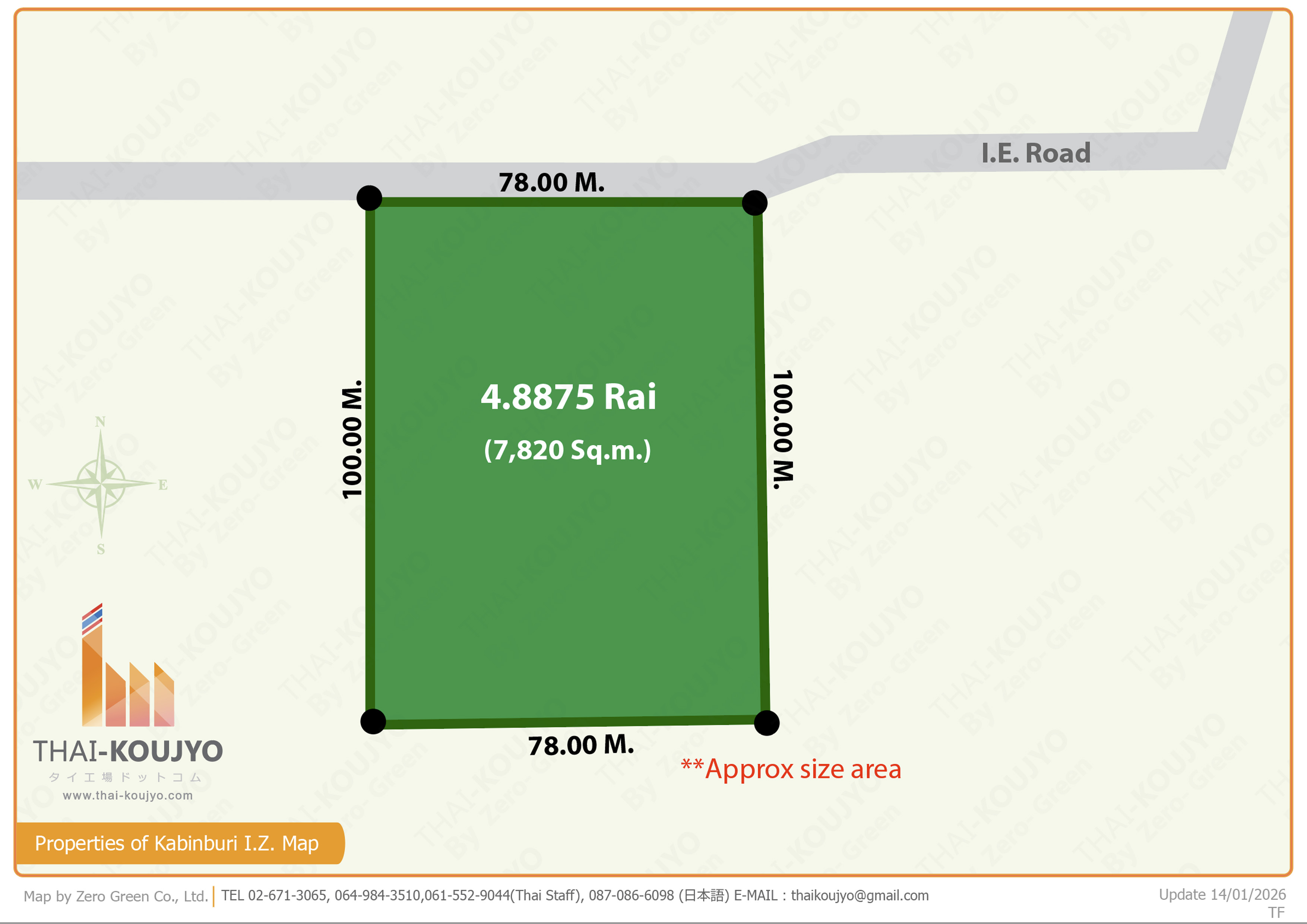 • Information, price and condition of this property provided and also reserved the rights to change without notice by the property owner. Thai-Koujyo.com can't guarantee any change of that. Buyer or lessor have to confirm the final information, price and condition with the property owner before making any contract.
