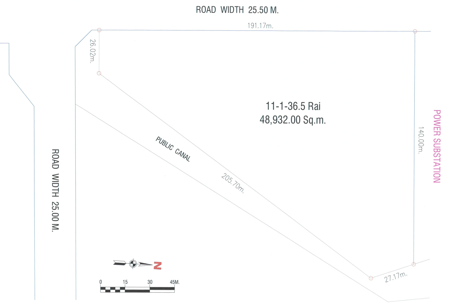 11-1-36.5 ไร่ (18,146 ㎡)รูปแปลงที่ดินสามเหลี่ยม