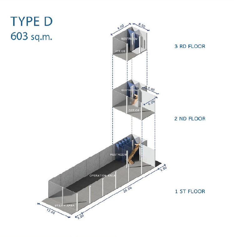 Office Area : 117 ㎡ Other Area : 36 ㎡ Building Dimension : 12X36 m. Building Type : Attach Zone Type General Zone