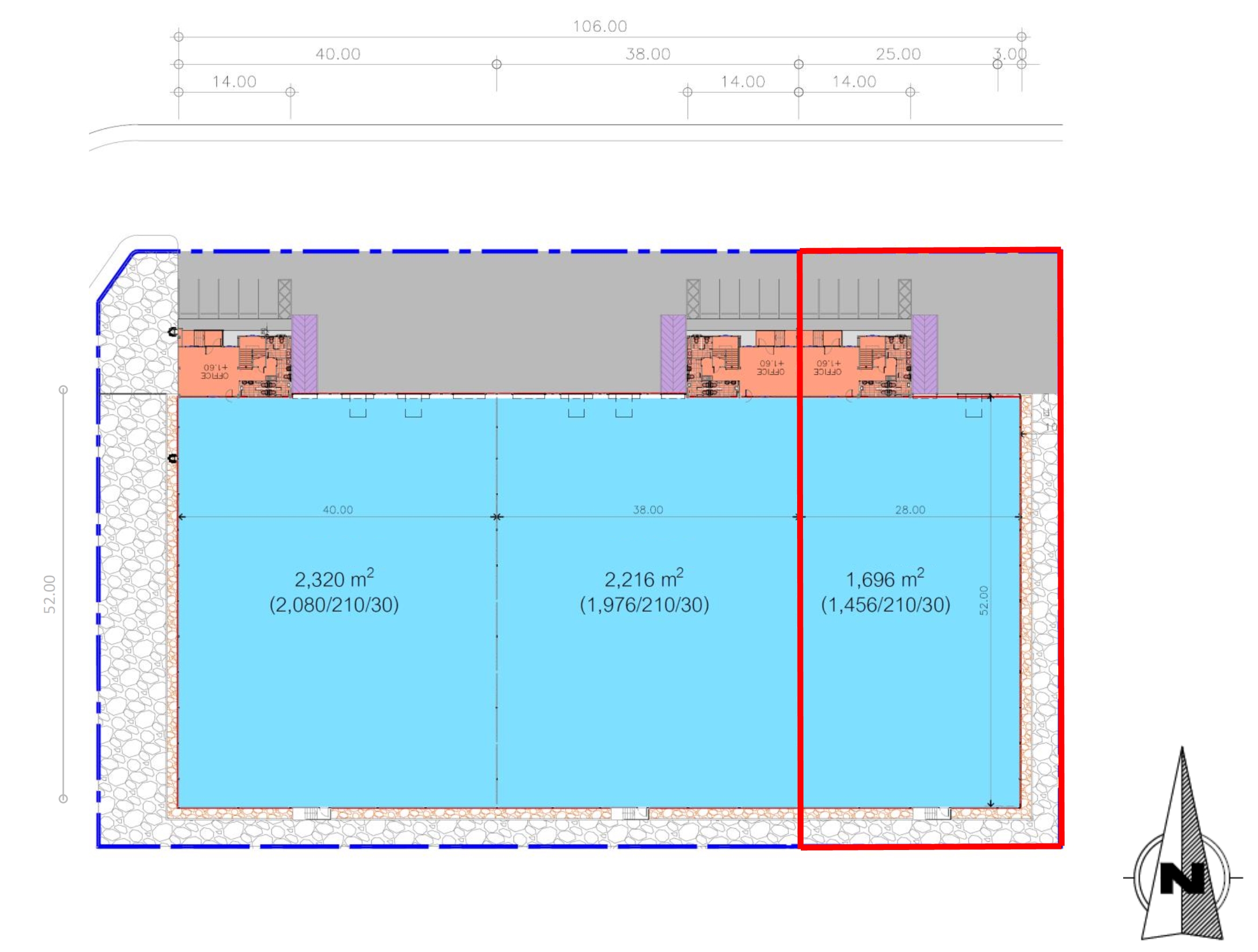พื้นที่ออฟฟิศ : 210 ㎡ พื้นที่อื่นๆ : 30 ㎡ ขนาดอาคาร : 28X52 m. ประเภทอาคาร : อาคารแถว ประเภทเขตพื้นที่ เขตประกอบการเสรี (ฟรีโซน)