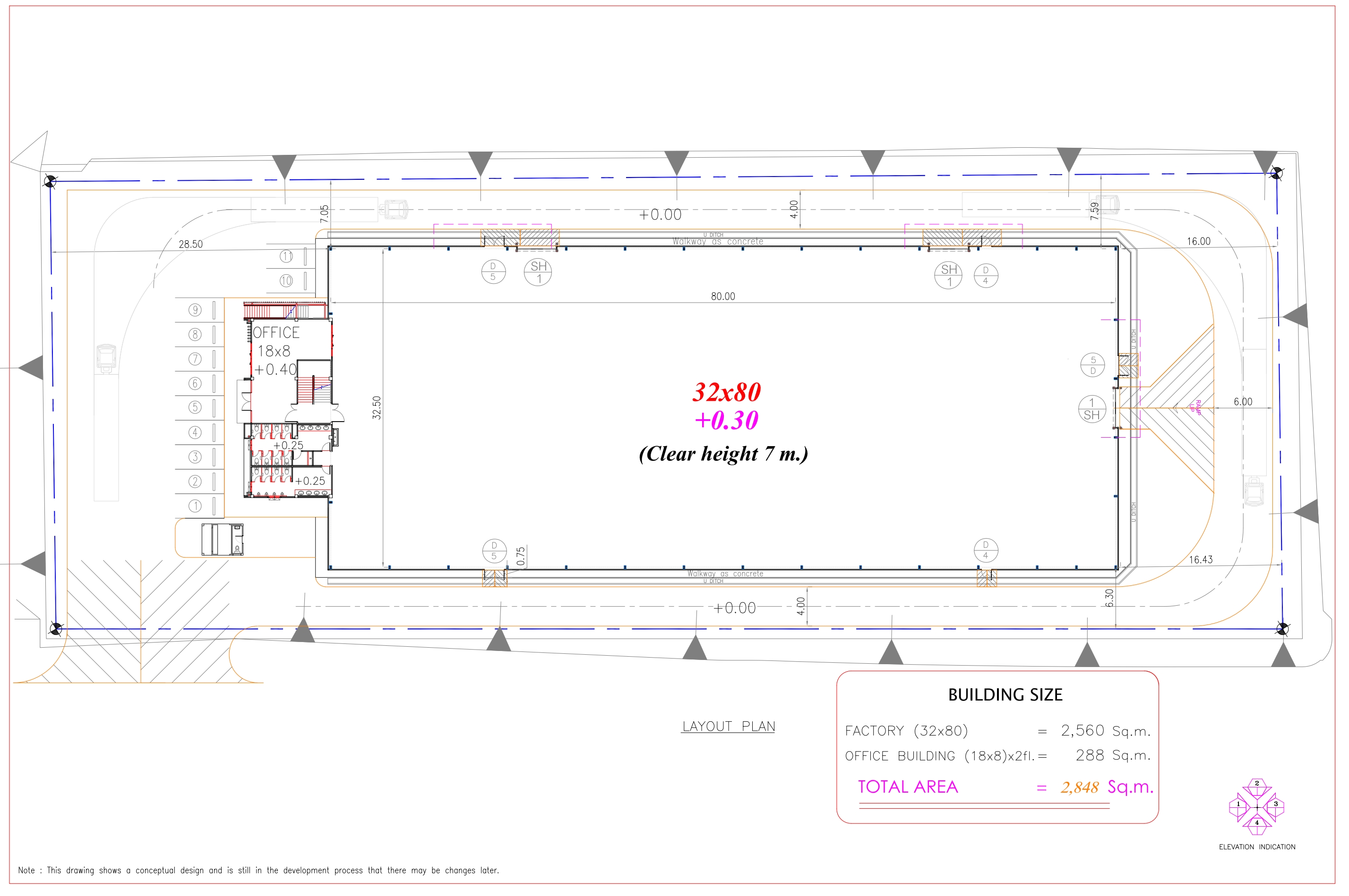 พื้นที่ออฟฟิศ : 288 ㎡ ขนาดอาคาร : 32X80 m. ประเภทอาคาร : อาคารเดี่ยว ขนาดพื้นที่ที่ดิน
