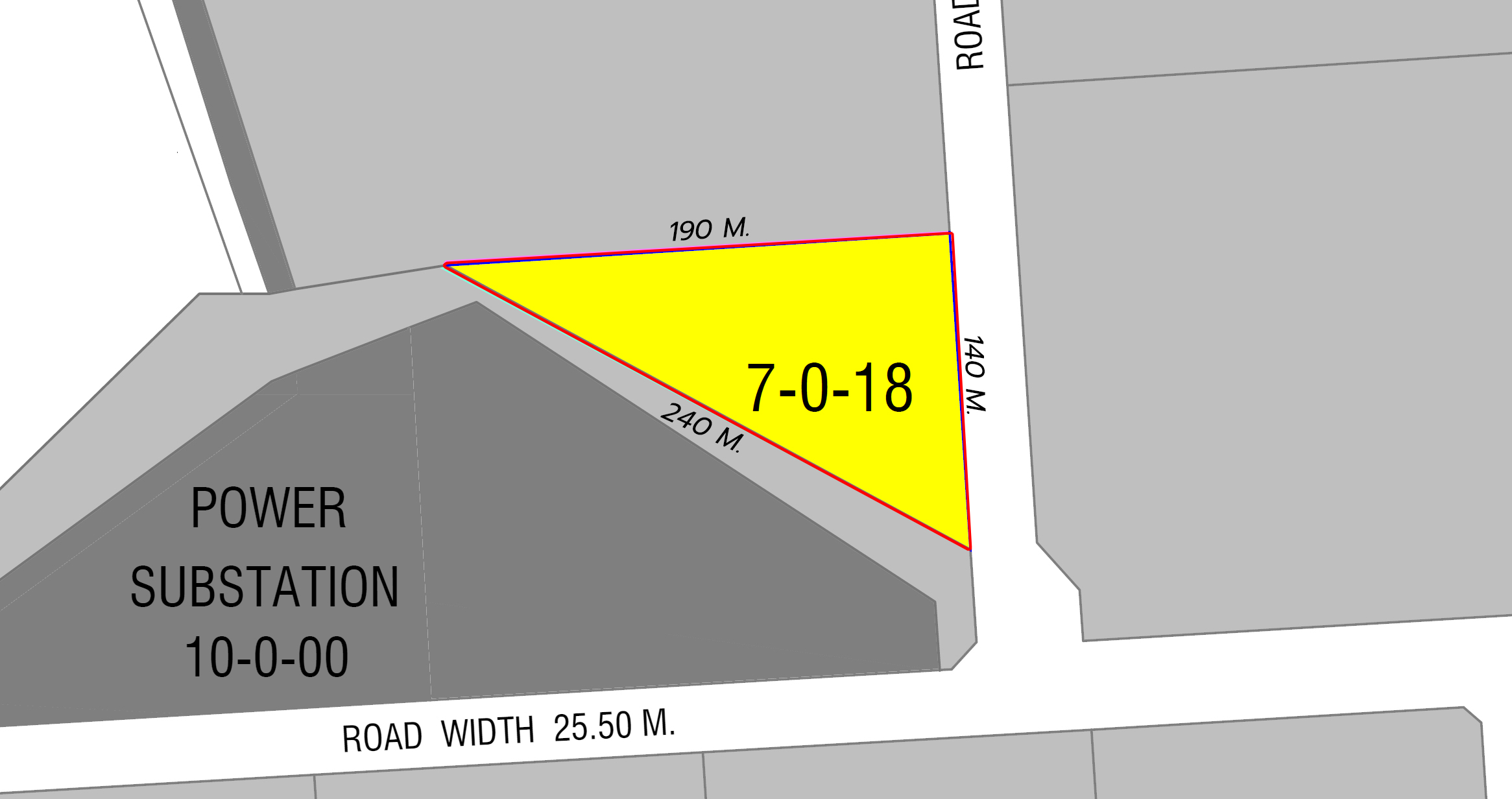7.045 Rai (11,272 ㎡)Triangle-shaped plot of land.