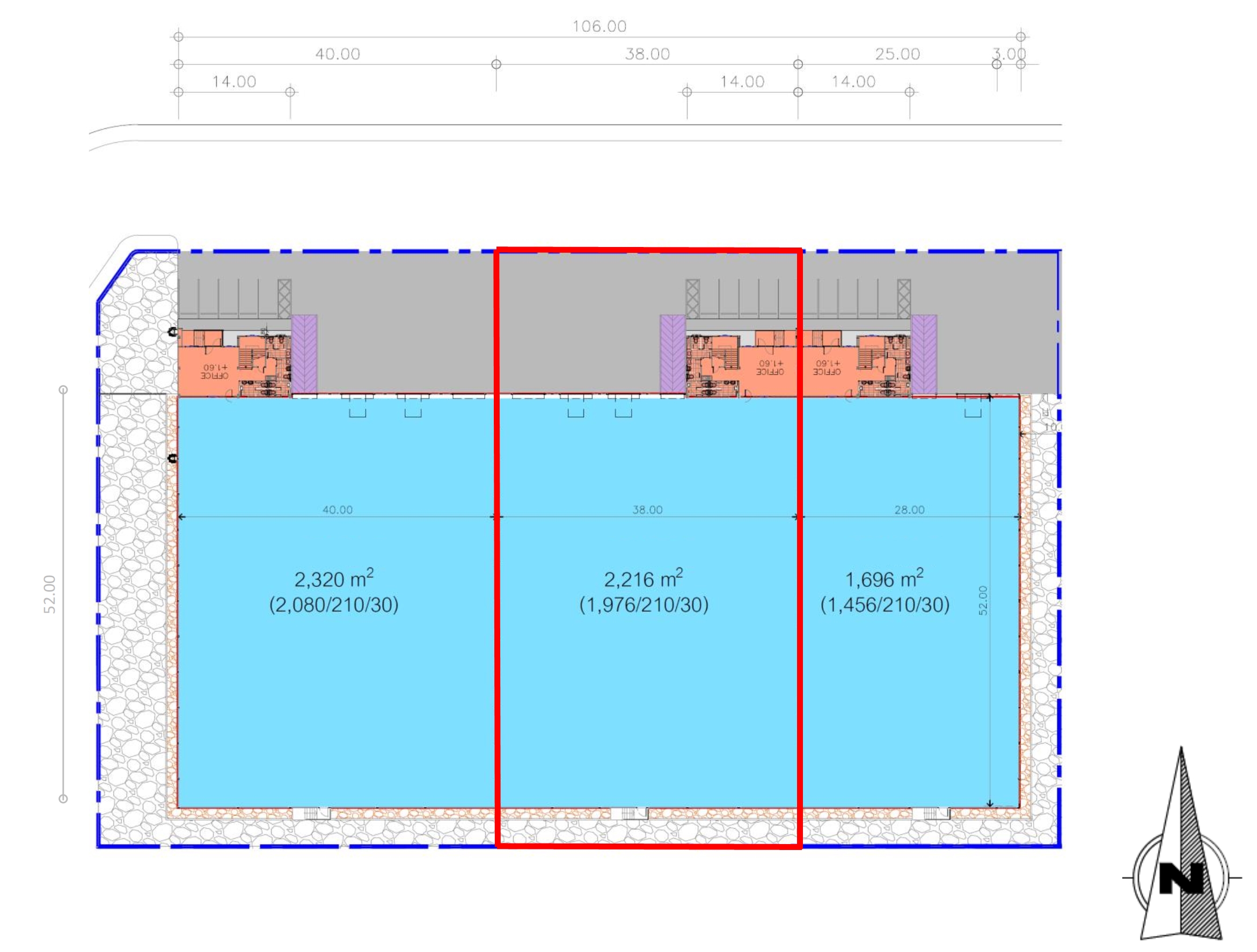 พื้นที่ออฟฟิศ : 210 ㎡ พื้นที่อื่นๆ : 30 ㎡ ขนาดอาคาร : 38X52 m. ประเภทอาคาร : อาคารแถว ประเภทเขตพื้นที่ เขตประกอบการเสรี (ฟรีโซน)