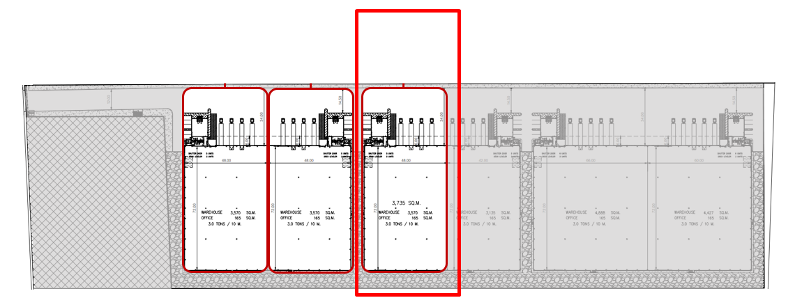 Office Area : 165 ㎡ Building Dimension : 48X72 m. Building Type : Semi-Detach Zone Type General Zone